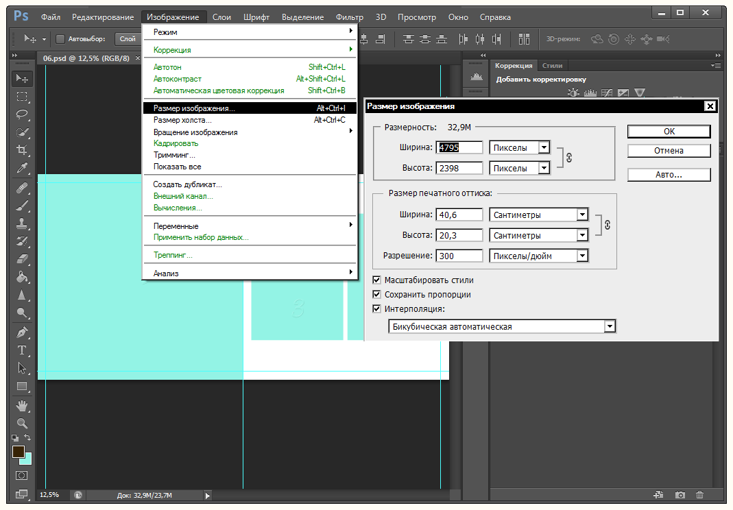 2. изменить размер шаблона .psd перед тем, как начать с ним работать